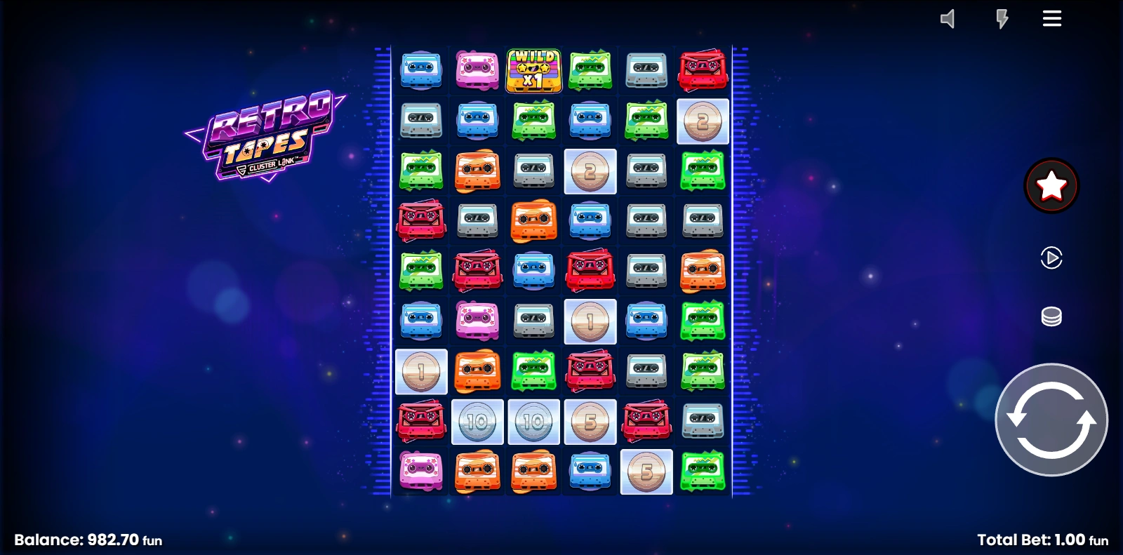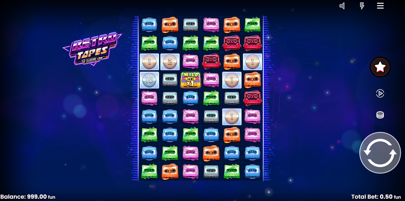 The retro theme gives the game a recognizable identity, while the mechanics remain easy to understand even for players who are new to cluster slots. For anyone interested in a grid-based slot with modern mechanics and strong visual style, Retro Tapes 2 is a solid addition to the category.